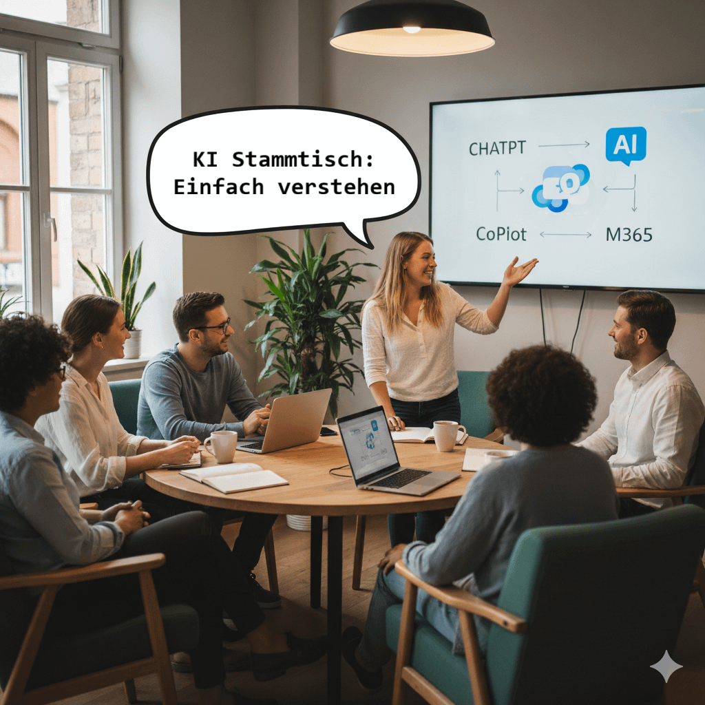 Mit dem KI-Stammtisch PRO haben Unternehmen eine einfache und günstige Möglichkeit, Ihre Mitarbeitenden an die Nutzung von KI-Tools heranzuführen.